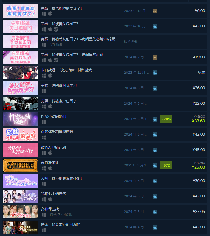自去年11月初《完蛋,我被美女包围》火爆市场以来,短时间内涌现了近20部同类型作品,如《完蛋!我也能追到美女了!》、《我和美女有个约会》等,其命名方式便足以辨识其跟风属性。其中虽有几部佳作,但大部分作品制作粗糙,剧情逻辑混乱,演员表演生硬,导致玩家对此类游戏产生抵触情绪。