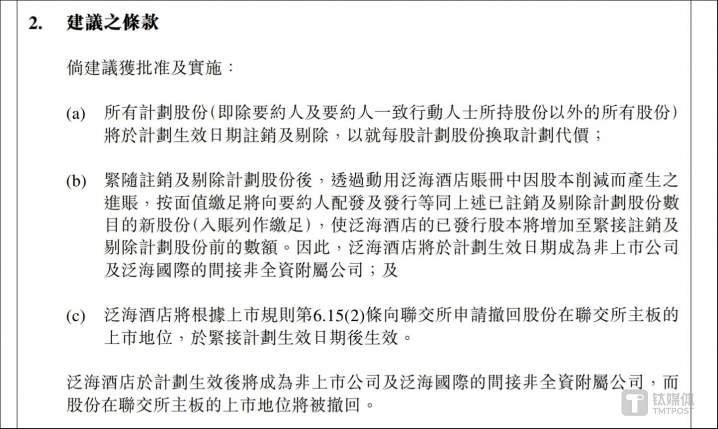 泛海酒店于计划生效后将成为非上市公司及泛海国际的间接非全资附属公司,而股份在联交所主板的上市地位将被撤回。
