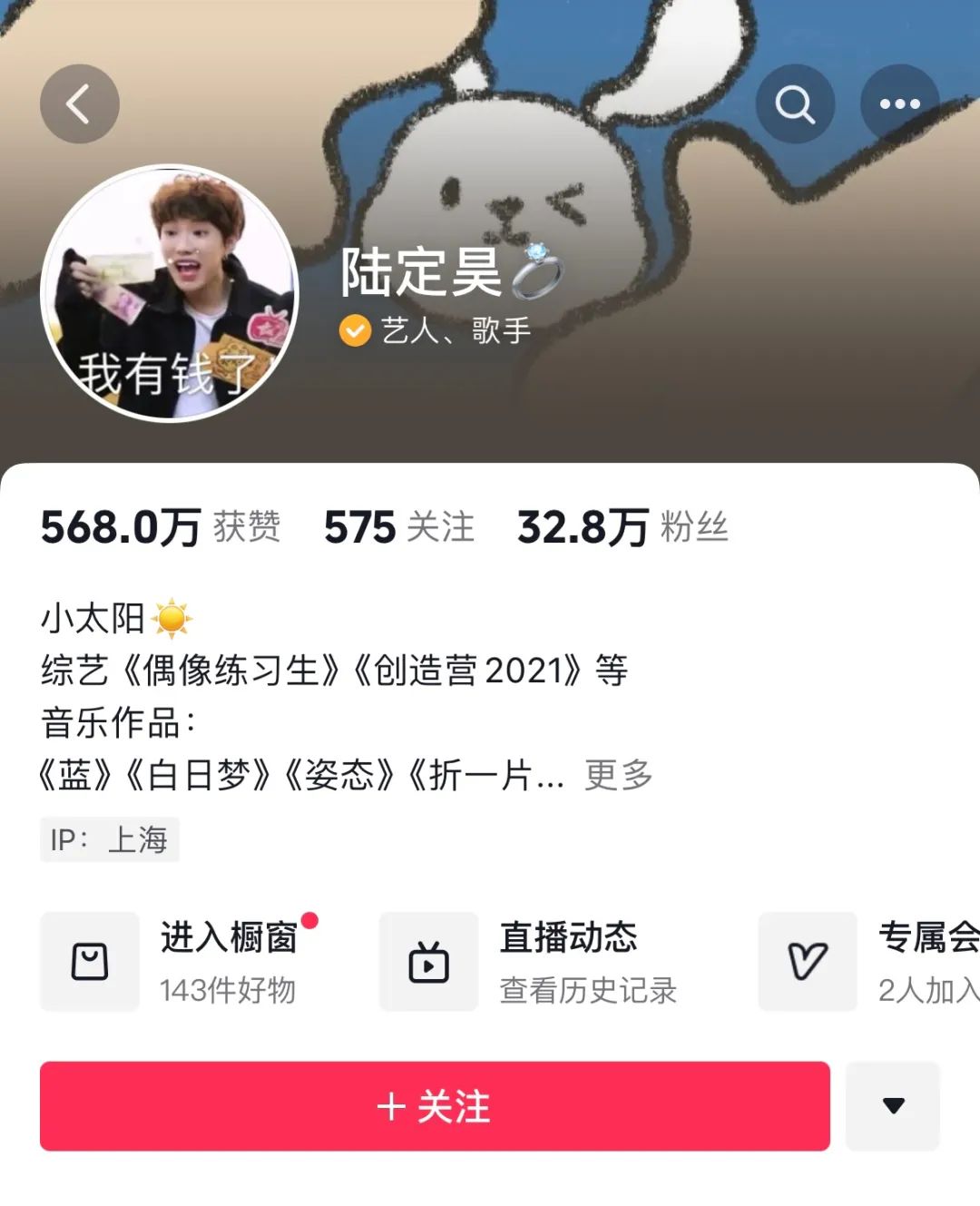 现在点开陆定昊的短视频平台账号,不见直播痕迹,但和自己的音乐作品并列的,是橱窗里的114件商品。林超泽的商品橱窗已清零,取而代之的是翻跳seventeen、(G)I-DLE的舞蹈视频以及自己参加音乐节、上综艺的工作记录。