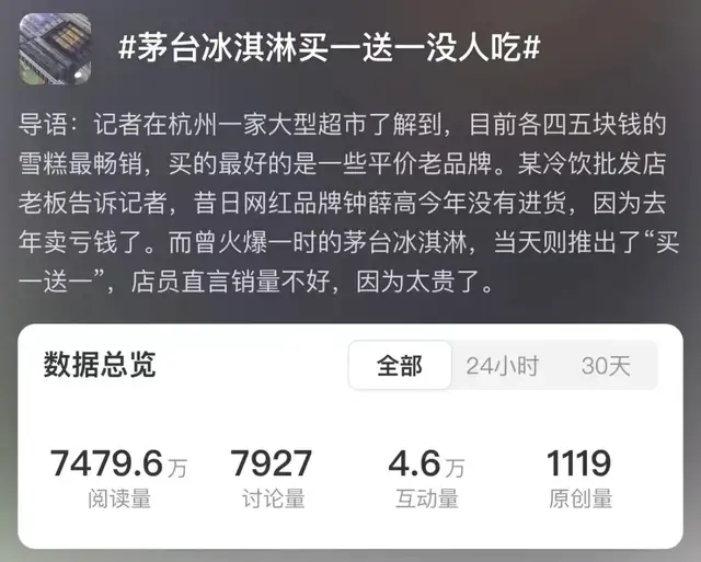 钟薛高面临财务困境,欠薪欠款、老板成为被执行人,员工数量也从1700人减少到数百人;跨界的茅台冰淇淋,其市场表现也遭遇挫折,通过小程序查询发现,包括北京、广州、深圳在内的7家旗舰店目前处于暂停营业状态,最近的热搜也是“茅台冰淇淋买一送一没人吃”。