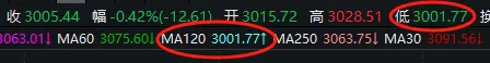 毕竟,现在的3000点不光是一个整数关口,还与120日线(即半年线)这个支撑位重合。