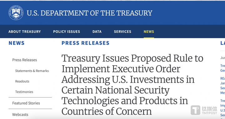 钛媒体App 6月22日消息,据报道,今天凌晨,拜登政府下属的美国财政部发布一份长达12页的规则草案,要求对美国在半导体和微电子、量子计算和人工智能领域的某些投资进行监管,禁止或要求限制中国在 AI 和其他技术领域的投资。