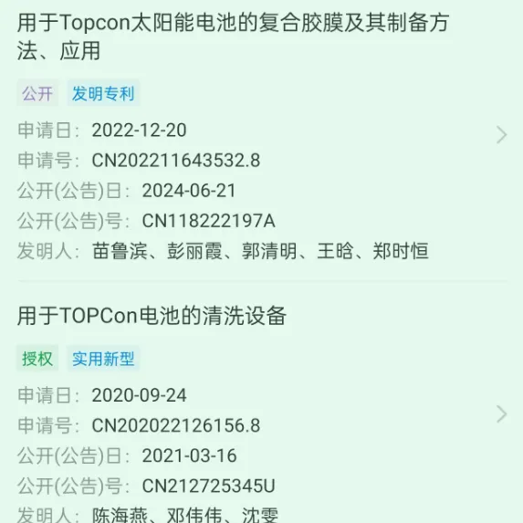 但是,在天眼查系统查询,阿特斯旗下与"TOPCon"有关的专利,仅能查到两项,看名称就不是什么核心的技术。而同样查询,天合光能有28项之多。