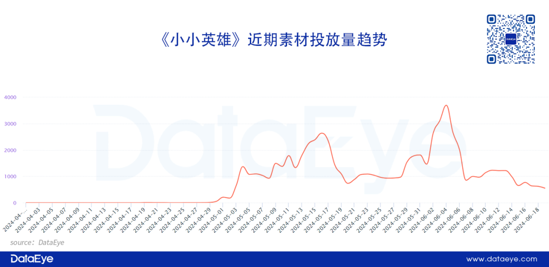4399旗下混变新品《小小英雄》在产品上线后展现出不俗的投放素材量,尽管与三七《寻道大千》不是同一个量级,但仍排名近90天素材投放榜第14位。