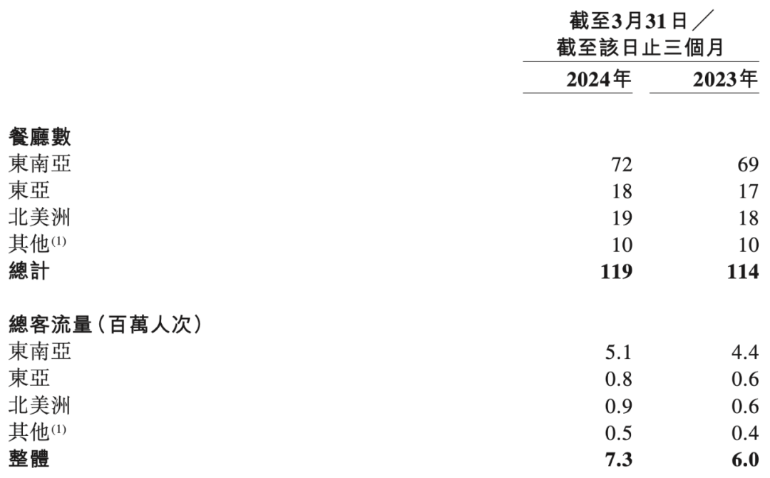 门店数量方面,特海国际在东南亚的餐厅数量占比达到6成;客流量方面,东南亚的占比接近7成。