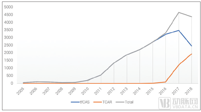 VQI中TCAR和CAS使用数量的趋势,图片来自Endovascular Today