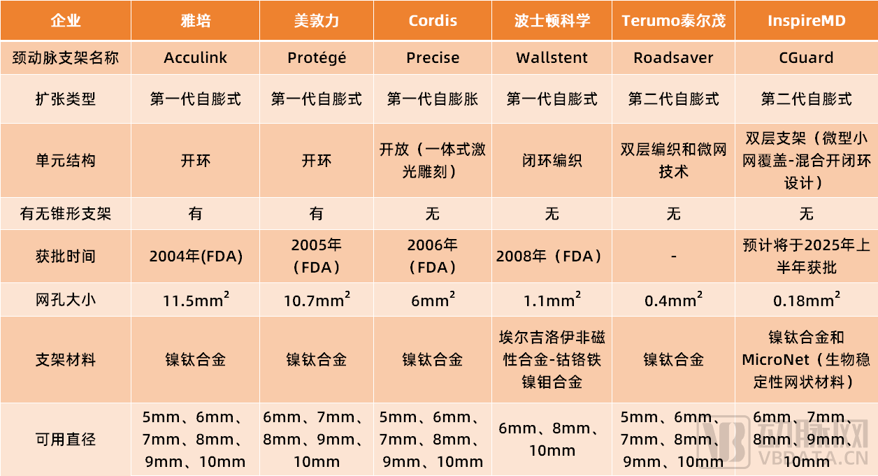截至目前,全球范围内普遍应用的颈动脉支架约为10款。其中,雅培的Acculink、美敦力的Protege、Coedis的Precise、波士顿科学的Wallstent等第一代产品均为近20年前的产品,而这些产品目前的市场占有率较高。