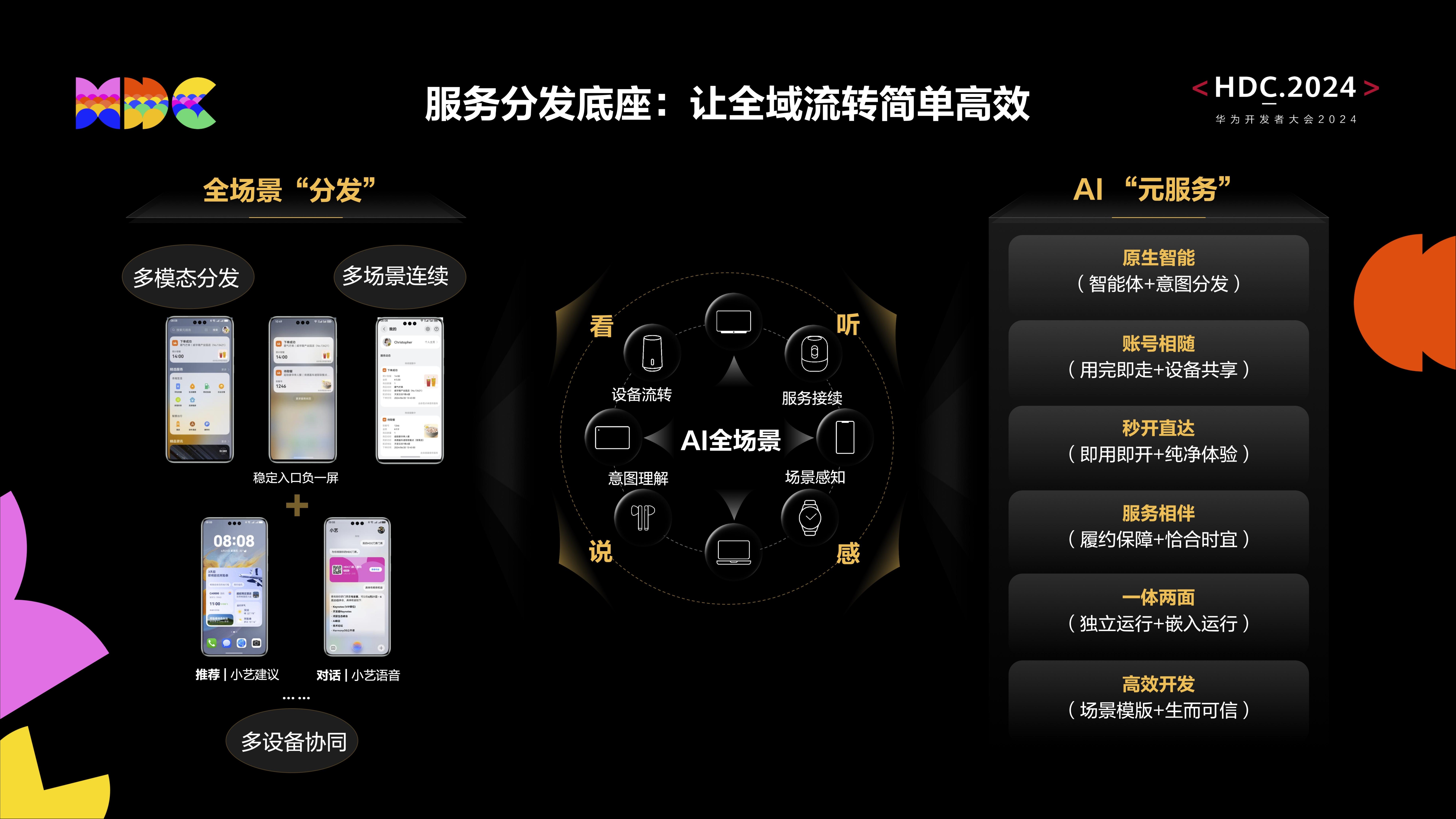 在这种服务分发的逻辑之下,主流的元服务商和创新、小众的元服务商,可以在一个舞台上进行真正公正的竞争。用户也可以在不用场景下便捷获取服务,也可以基于服务状态穿插使用不同服务,享受场景化的“服务合时宜”体验。