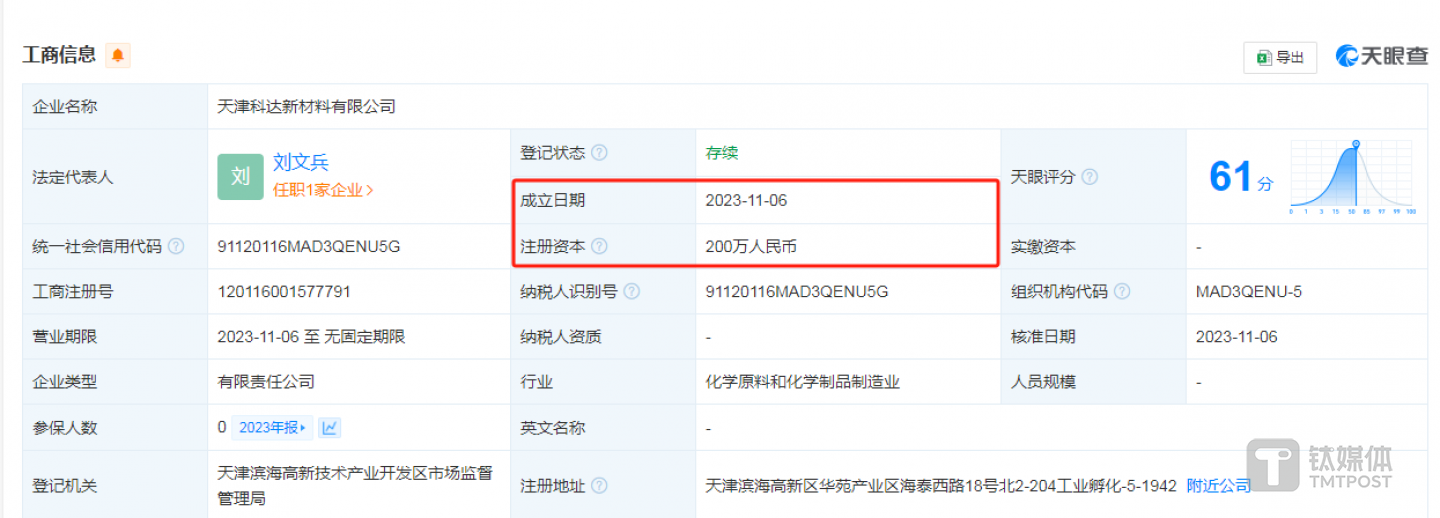 天眼查显示,科达新材料成立于2023年11月,注册资本为200万元。这就令人疑惑,科达新材料还未成立,瑞克科技是怎么委托其帮助公司研发?