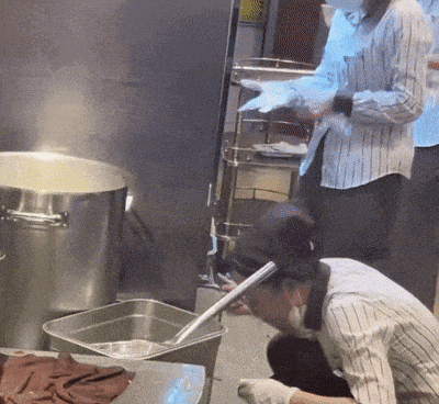 今年2月,网上有视频爆料,胖东来美食城的工作人员在煮面期间用筷子夹起一根面条尝了一口,但她在尝完之后没有清洗也没有更换筷子,直接拿起漏勺就用筷子开始捞面。