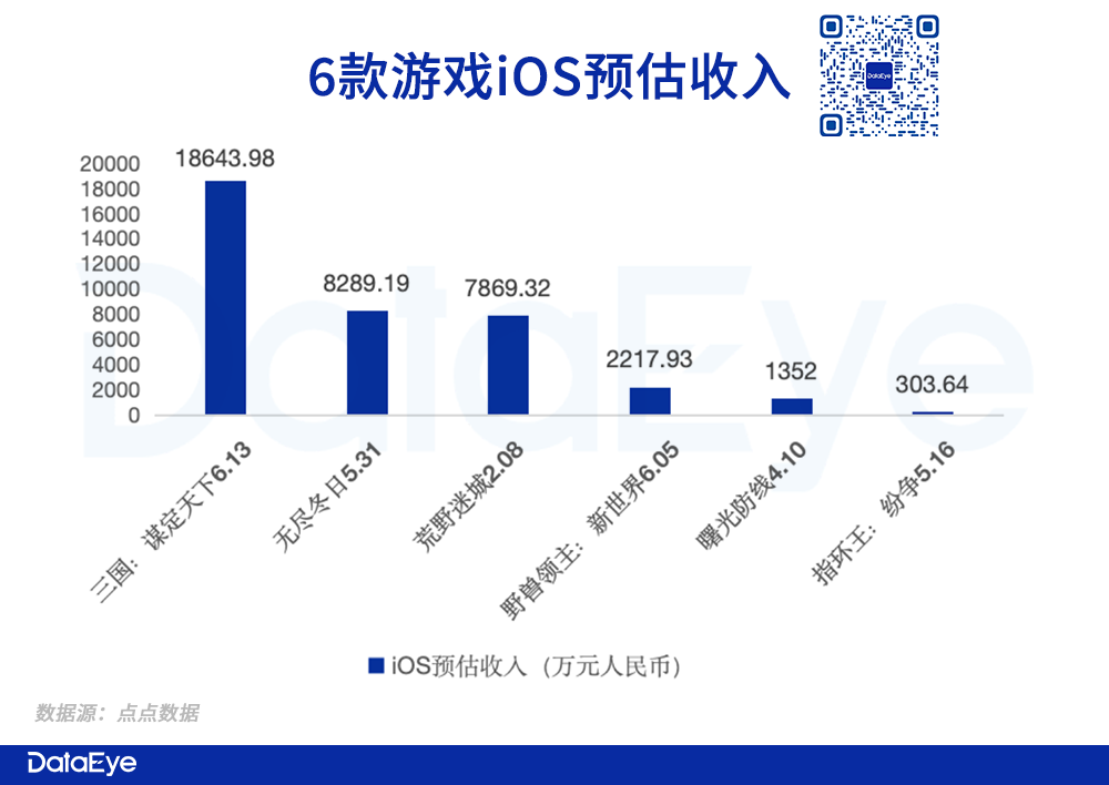 但我们仍能看出,6月13号公测的《三国:谋定天下》,虽然上线时间最短,但上线14天预估收入iOS约 1.86亿元,大幅领先。大摩研报预估《三国:谋定天下》预期首年收入达10亿元。如果拿安卓两倍于iOS预估,该游戏两周就已达到恐怖的5.4亿收入。