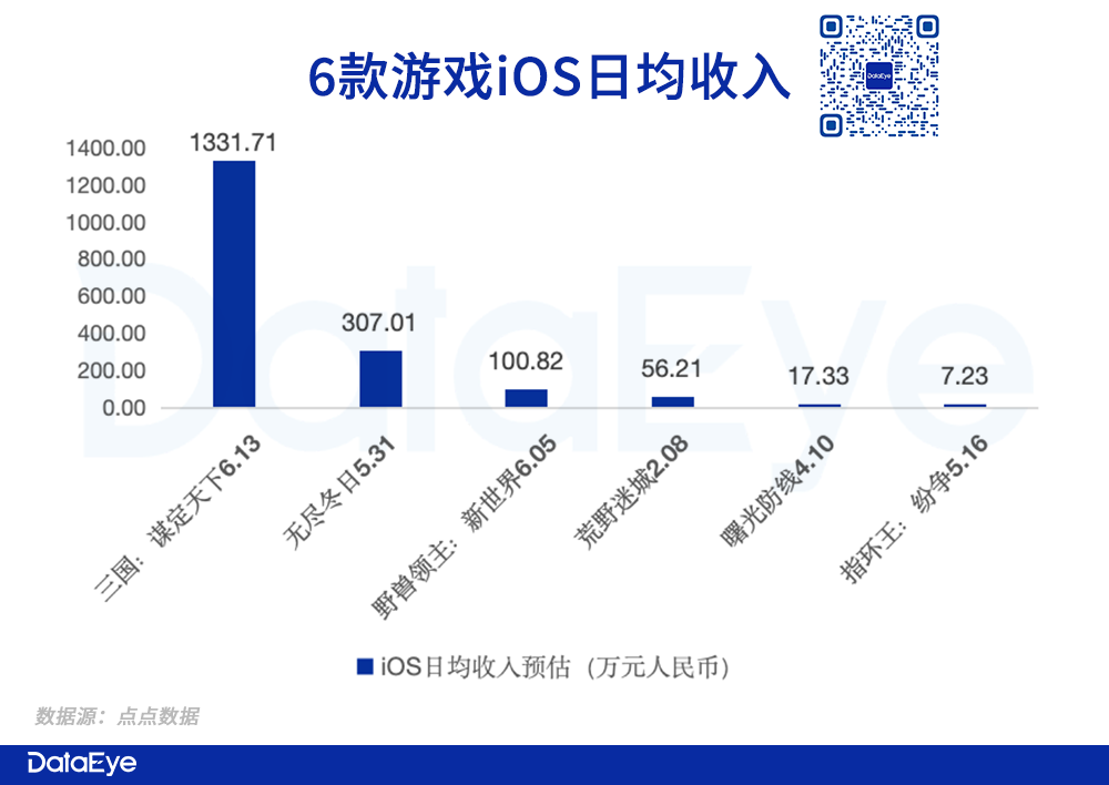 由于各游戏上线时长不一,我们进一步统计了平均每日iOS预估收入,具体情况如下: