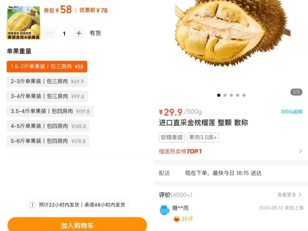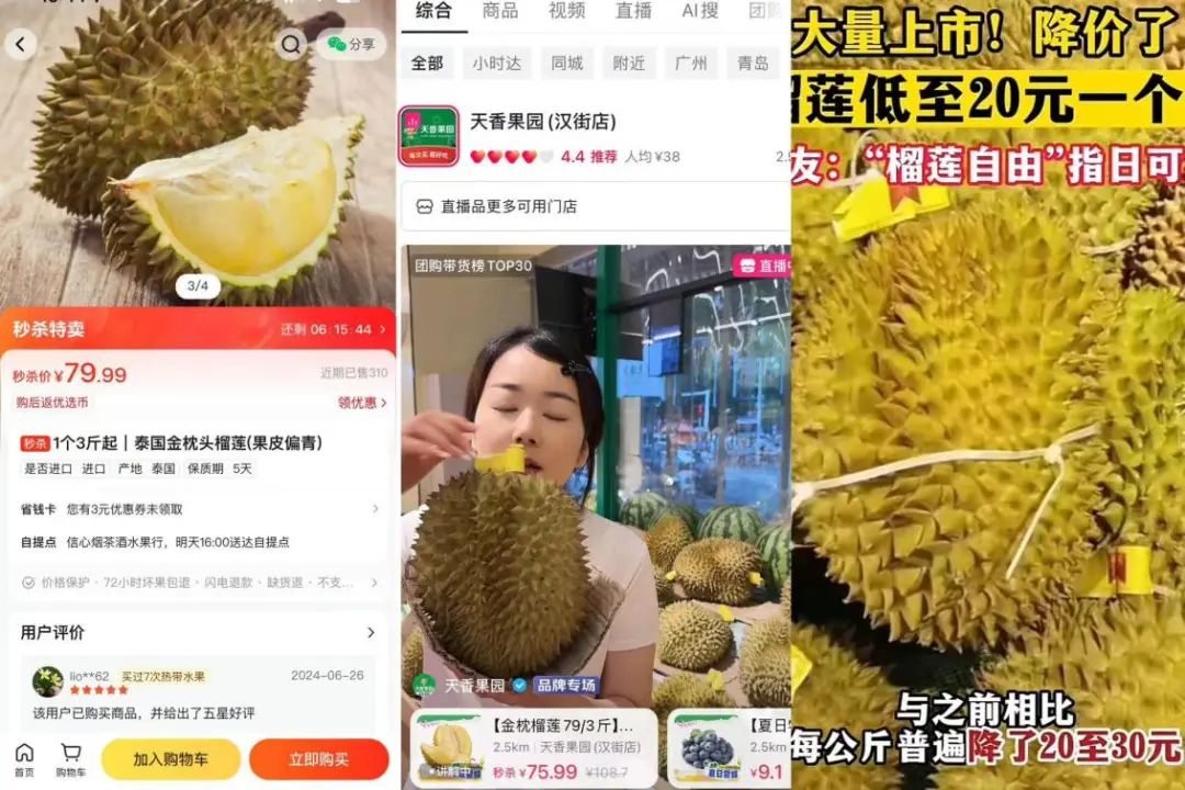 于是,无论是电商团购还是连锁商超,都围绕榴莲这一稀缺且备受欢迎的水果单品,开展了一系列“榴莲价格战”。