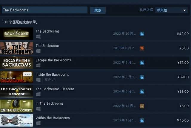 目前,仅Steam上与The Backrooms相关的游戏,就已经达到了310个。多到看起来已经亟需新都市怪谈开路的程度了。而新怪谈最不缺的就是“新”。