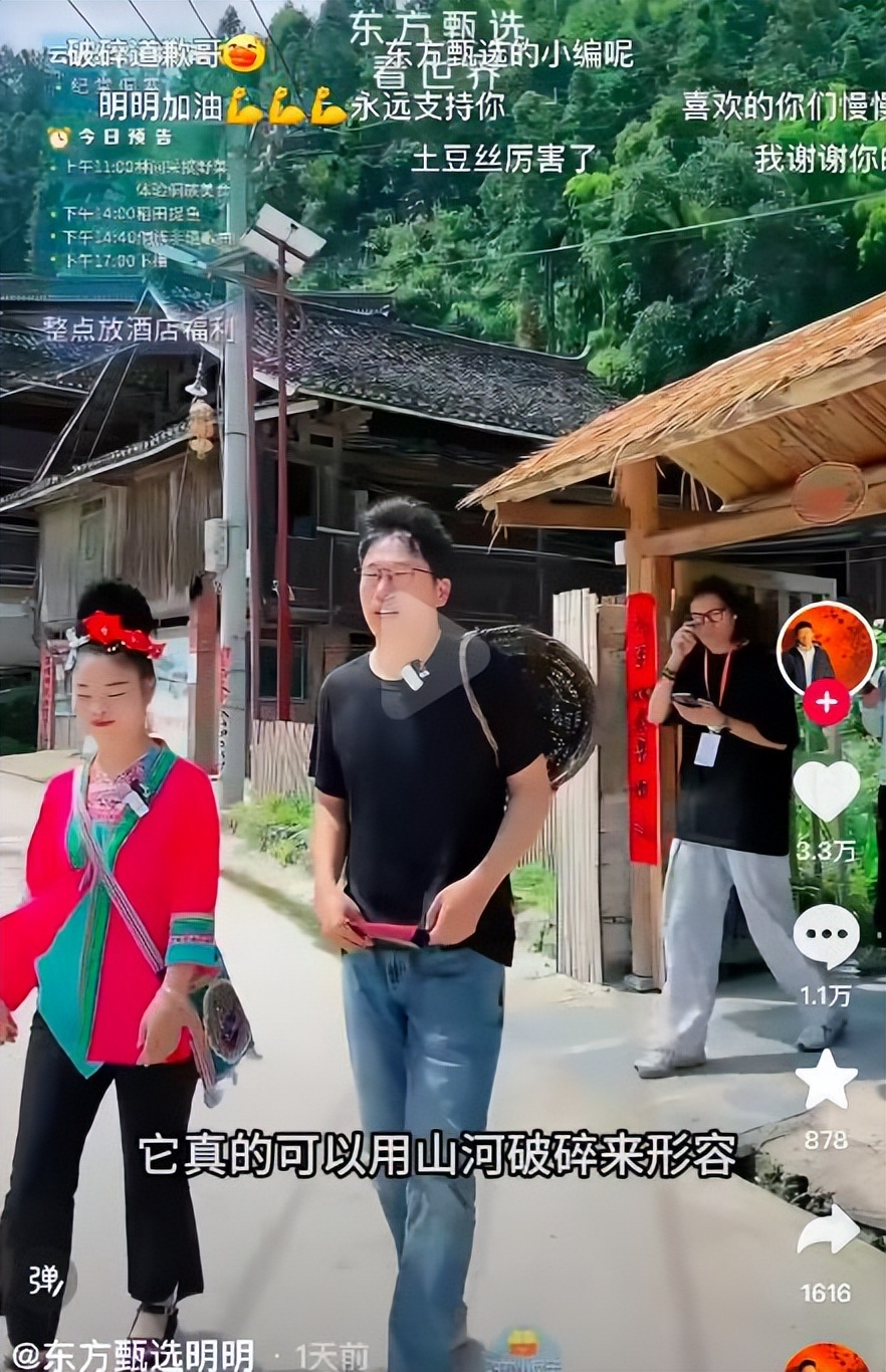 6月22日,另一主播明明在贵州肇兴侗寨带货贵州文旅,用“山河破碎”来形容云贵高原的地形,主播YoYo微博里对当地蜘蛛的调侃也同步被翻拣出来。随后,贵州文旅删除所有东方甄选相关视频。29日上午,主播明明在网上发布道歉信息,“祸从口出”频频上演,持续占领负面热搜。