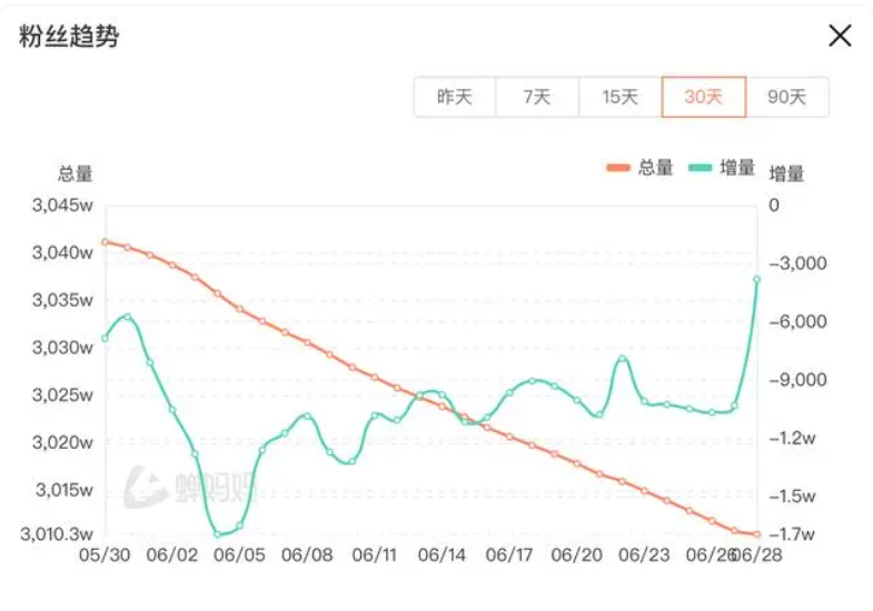 6月27日,东方甄选停播一天。6月29日晚,官方发布声明称从来没找政府要过宣传费,也坚持不向任何企业、商家收取所谓坑位费用。蝉妈妈数据显示,东方甄选直播间粉丝总量自5月30日的3041.1万人,至7月1日减少了约38万人。自6月起,其股价一路下跌,截至上周港股收市,每股股价为12.62港元。种种迹象来看,“去董宇辉化”后的转型调整并不顺利,阵痛仍在持续。