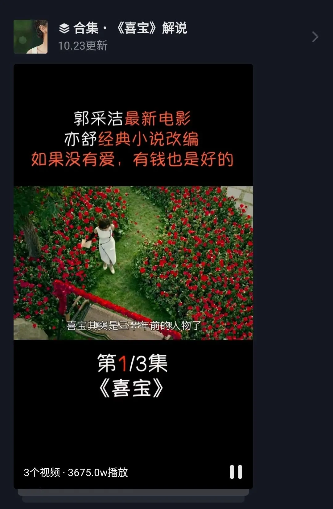 该片在抖音累计上榜热搜话题达到27个,爆款视频中,不只有来自官抖的物料,也有来自博主的二创,但视频内容的基本构成都是“原著情怀+主演演绎的片段+原著金句组成的文案+催泪BGM”。
