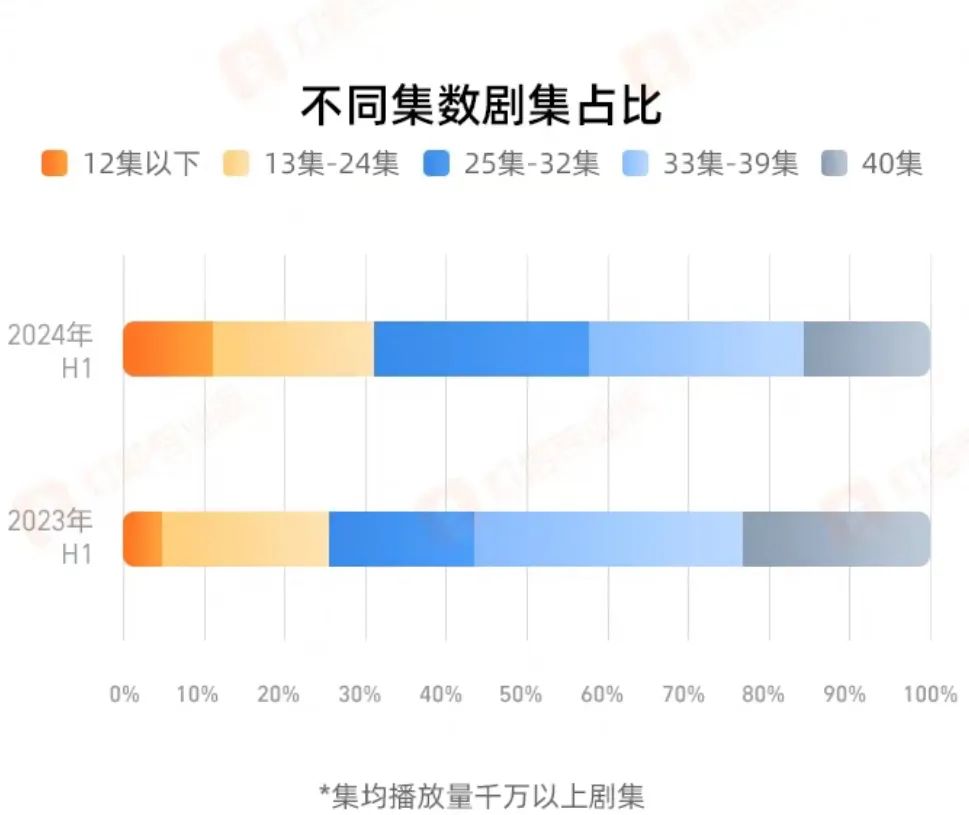 几年以前,12集短剧还是备受行业内外关注的新形态,而如今已经不算新鲜事了,长剧正在变得越来越短。短于12集的迷你剧出现了:去年6集的《平原上的摩西》开始进行试验,今年8集的《我的阿勒泰》和10集的《新生》,也都收获了不错的观众反馈。从数据上,能更直观地看出“长剧向短”的趋势。上半年中,12集以下剧集占比超10%,较同期占比翻倍,25-32集剧集占比提升8.7%,33集以上剧集整体占比减少14.2%。![]()