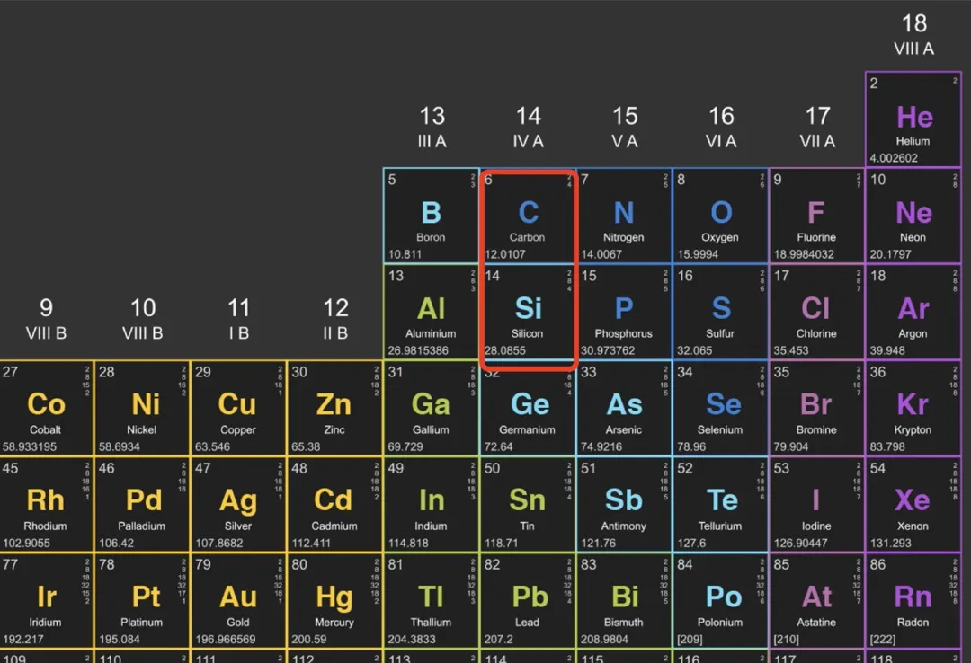 元素周期表上碳和硅同族