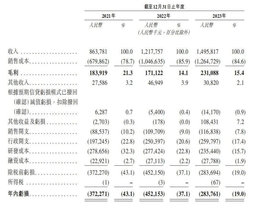 虽然收入在连年增长,但依然未能摆脱亏损。报告期内,公司年内亏损金额分别为3.72亿元、4.52亿元、2.84亿元;经调整净亏损(非国际财务报告准则计量)分别为3.24亿元、3.91亿元及2.18亿元,三年净亏损共计9.33亿元。