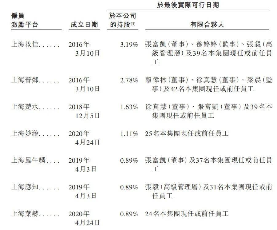 在后期成立的员工持股平台——上海楚水及上海凤午麟,张富凯又获得股权激励。除张富凯外,公司其他高管人员徐真慧、赖伟林等人也拥有股权激励平台股权。