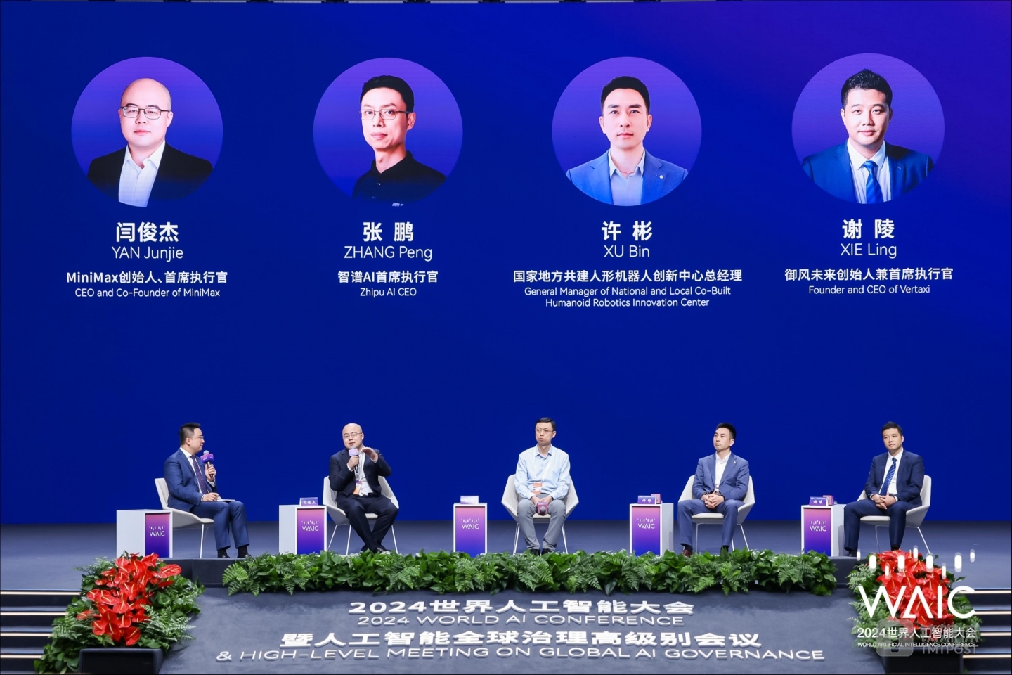 7月4日,WAIC 2024产业发展主论坛上,围绕“大模型驱动的新价值链构建”主题,MiniMax创始人、CEO闫俊杰,智谱AI CEO张鹏,国家地方共建人形机器人创新中心总经理许彬,御风未来创始人兼CEO谢陵,四位展开了一场思想碰撞。