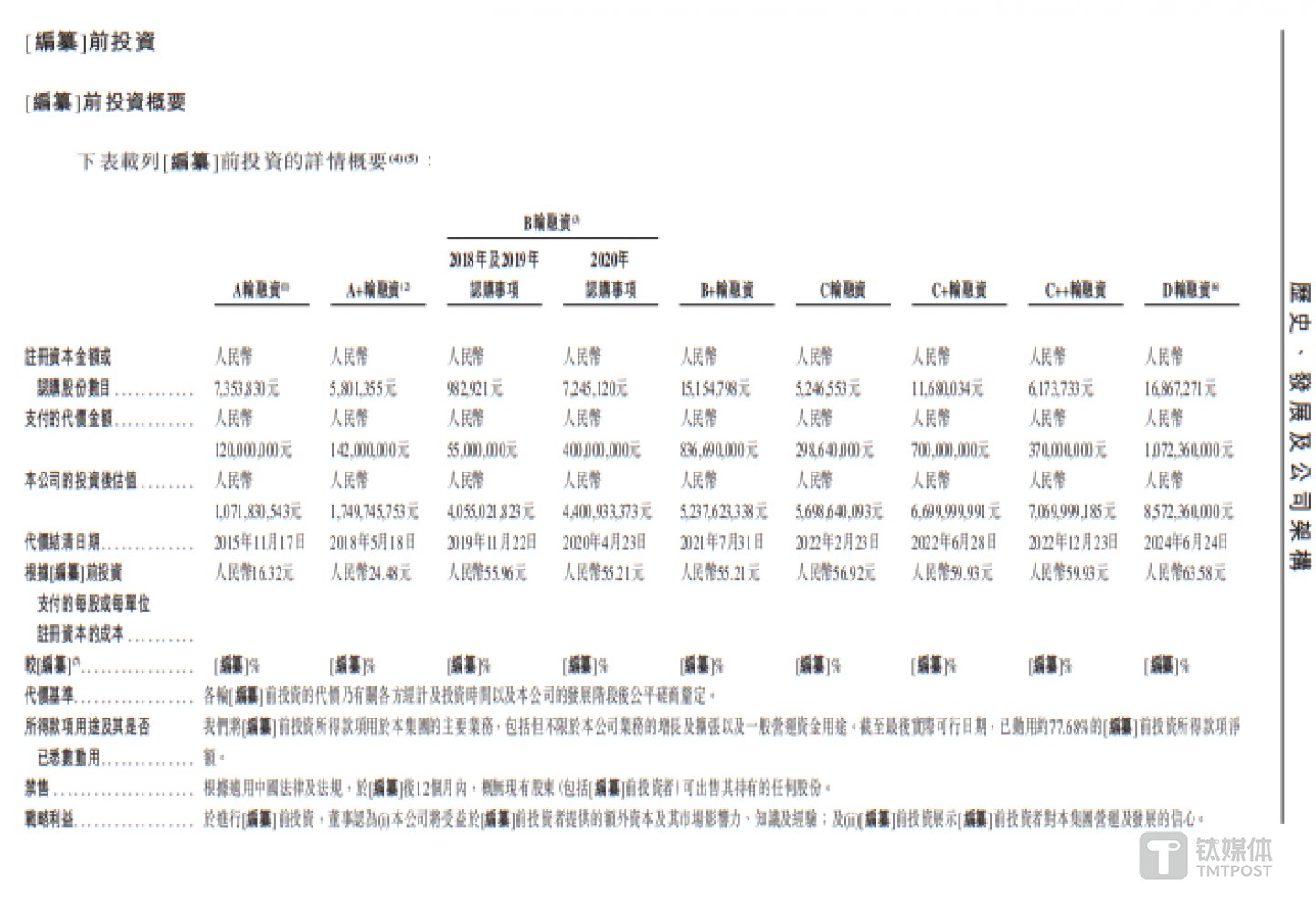 其次,2024年1月-6月,博泰车进行了D轮融资,合计融到了10.72亿元,具体情况如下: