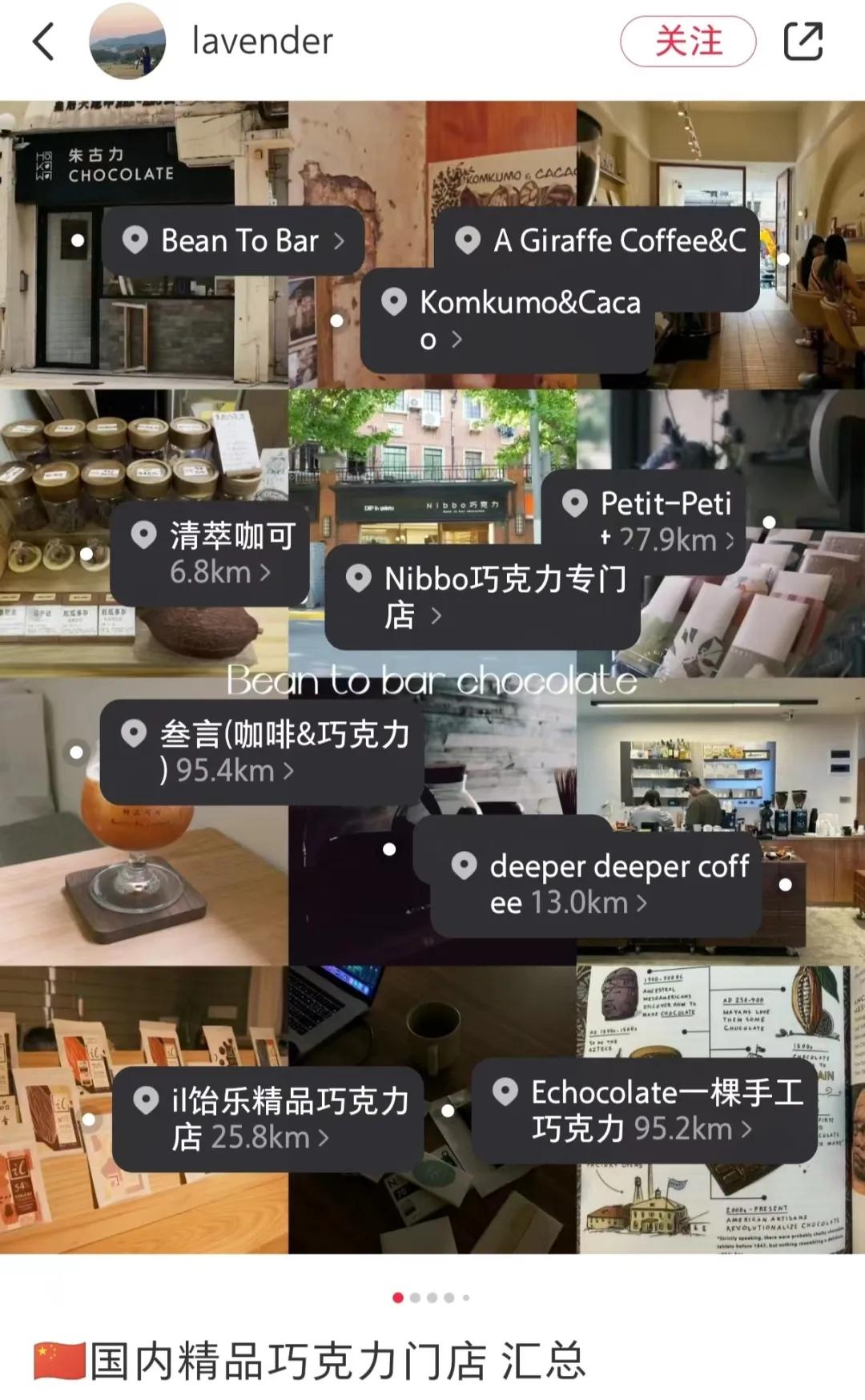 将Lavender的帖子和评论区回复结合起来,你就能得到一幅“中国精品巧克力”地图。北京、上海、广州、深圳、武汉、成都、贵阳……从南到北,从东到西,许多城市都有自己的精品巧克力店。