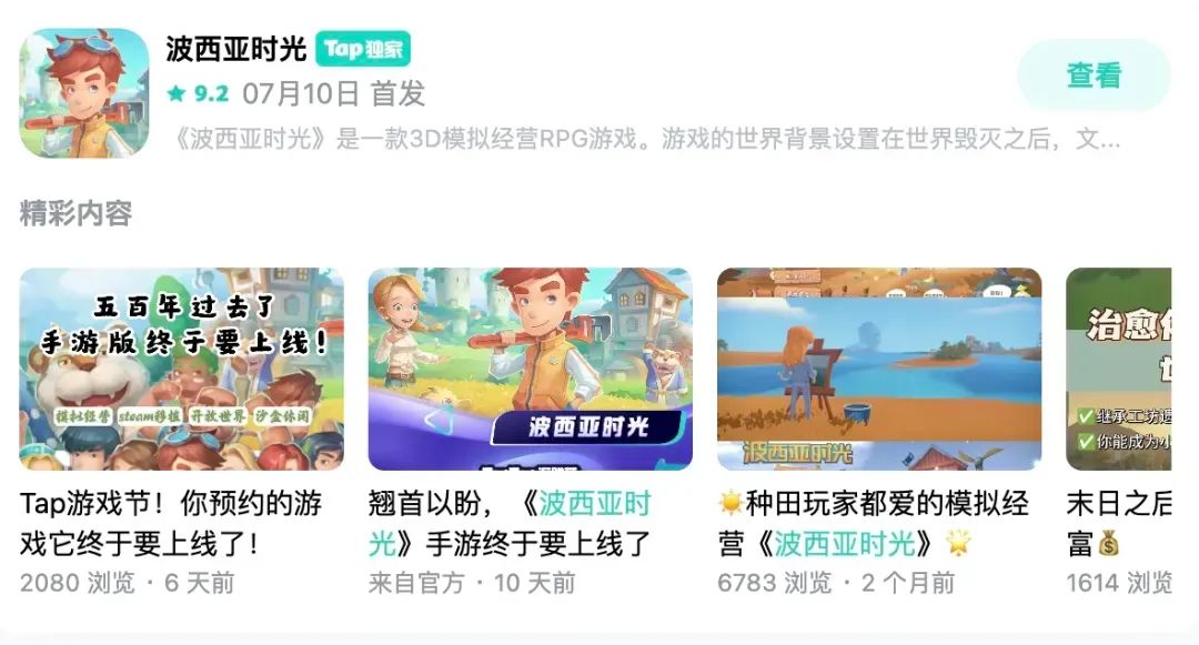 6月26日泡泡玛特的《梦想家园》、7月10日《波西亚时光》手游版上线、还有心动跳跃整整研发了10年的《心动小镇》也将于7月17日上线。