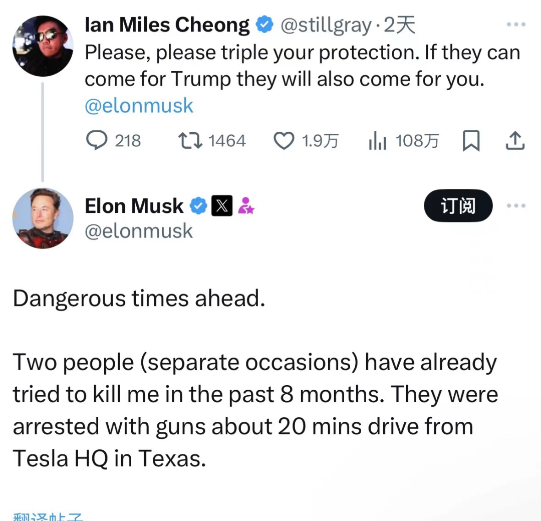 埃隆·马斯克(Elon Musk)第一时间在社交媒体X(前推特)上力挺特朗普,更多来自于感同身受:他表示,在过去的8个月中,已经有两个人(在不同的场合)试图谋杀他。