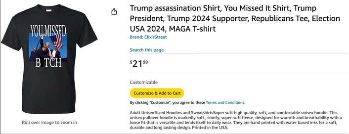 这无疑是当下热度最高的突发事件,所有人的目光都被吸引。电光火石之间冲到台下咔咔按快门的摄影师,拍下特朗普的“人生照片”。24小时之内,国外电商网站上印有这张照片的T恤已经开卖。