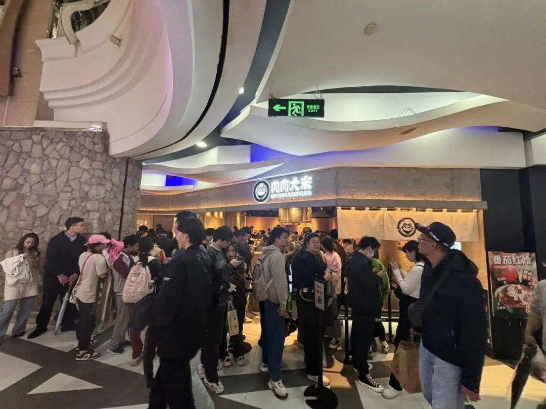 作为其海外扩展的一部分,物语集团于2022年11月在上海的美罗城开设了“肉肉大米”品牌,售卖汉堡肉。门店在地下一层,但是很难错过,因为总是排着长队。