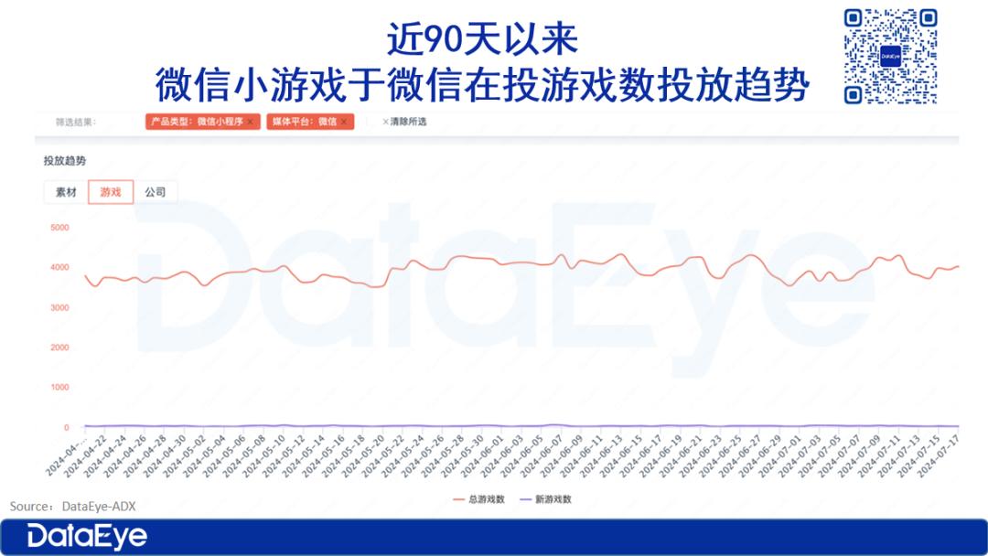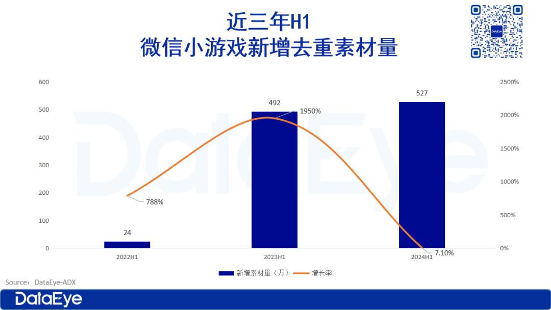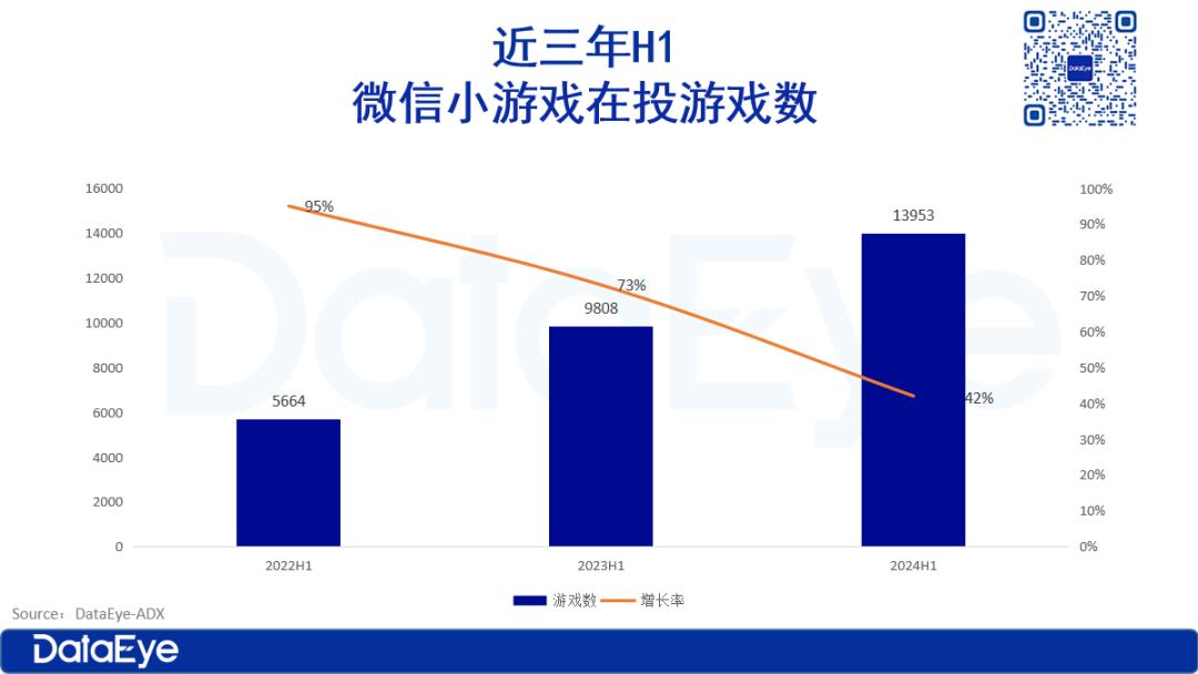 DataEye-ADX数据显示2024上半年参投微信小游戏数超过1.39万款,同比增长42%。