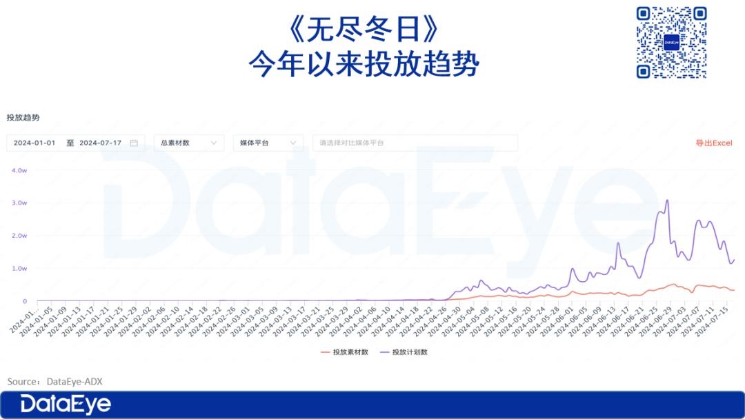 老游戏方面,ADX数据显示,以《寻道大千》《无尽冬日》为首的老游戏买量投放大幅增长;
