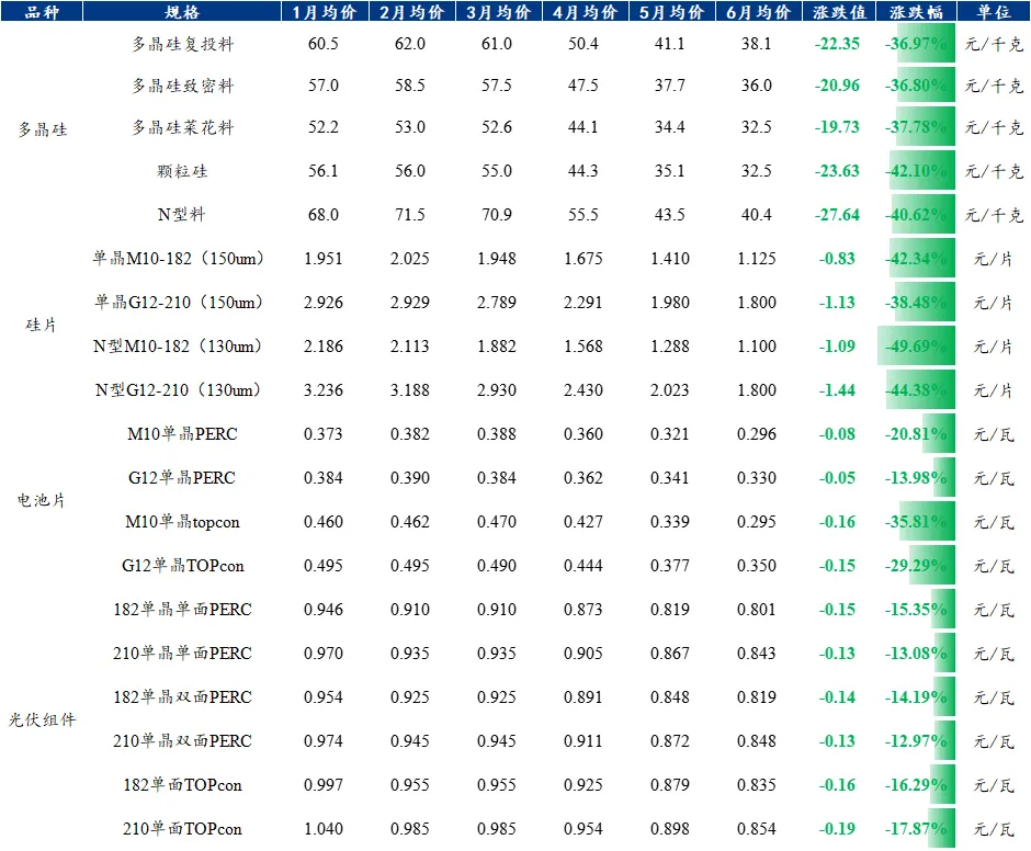 进入7月以来,除了多晶硅价格持稳外,硅片、电池片、组件环节仍有继续下行趋势,但相较于前期也算维稳。但价格维稳的因素并不是基本面有所好转,而是已经到了跌无可跌的地步。