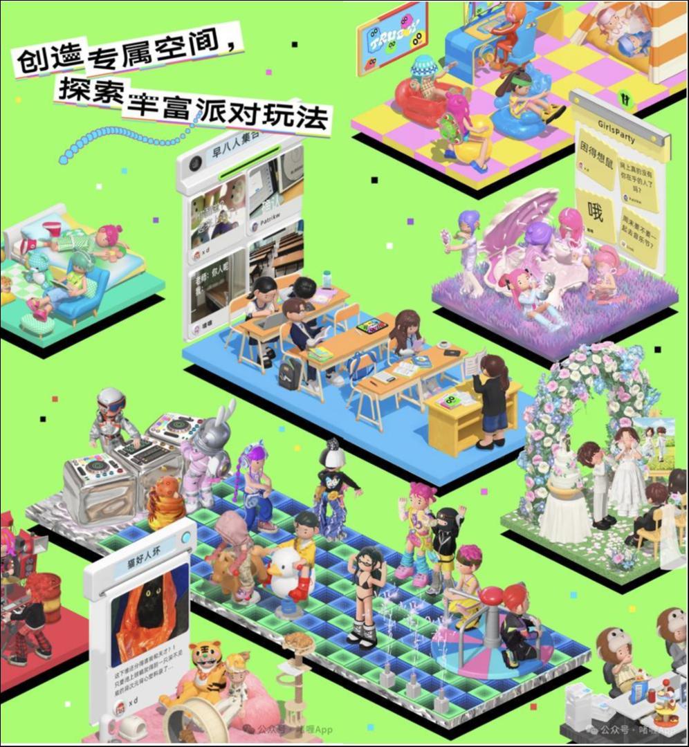 在微信岿然不动占据国内社交软件头把交椅,并以强大的生态能力阻断了几乎所有后来者的上升通道时,新来者的上位之路,只能从差异化的定位出发,渐进的摸索突围之路。不同于微信,无论是否熟人,都需要以真实身份面向整个社交圈层一样,啫喱天然的虚拟人形象,为用户开放性的表达和创造提供了更多的机遇和可能。在可爱的虚拟人马甲之后,更天马行空的表达,更自由自在的创造,也成为吸引新用户入住啫喱的重要原因。