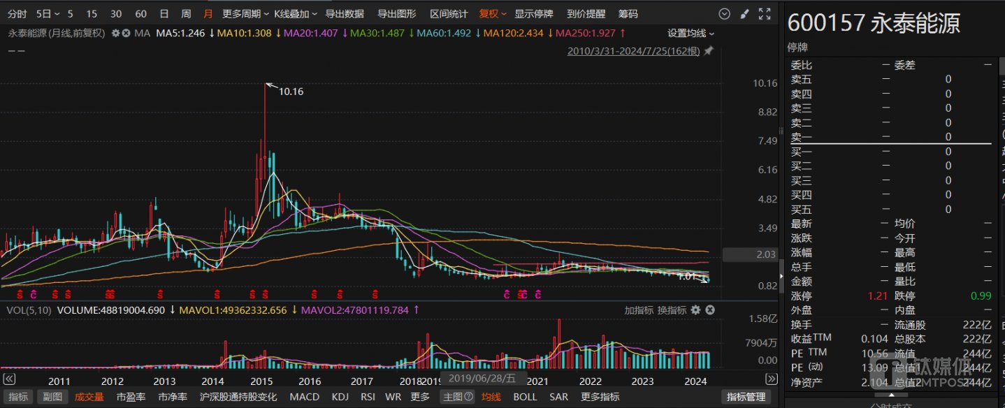 但也是经历了这轮重创后,永泰能源的股价才较为低迷,股价长期徘徊在2元左右,一直未有起色。