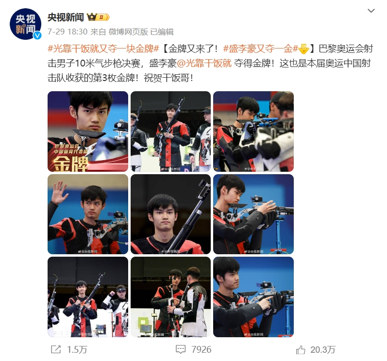 盛李豪光靠干饭就夺得金牌(图源:微博)
