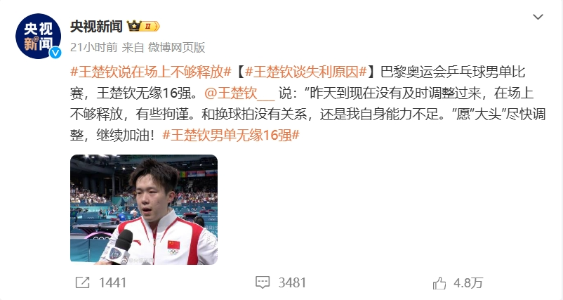 王楚钦爆冷出局后,第一时间给出回应,称球拍被踩的确受到一定影响,但绝非输球的理由,“还是自己发挥出了很多问题,犯了很多错误,才导致今天的失败”。