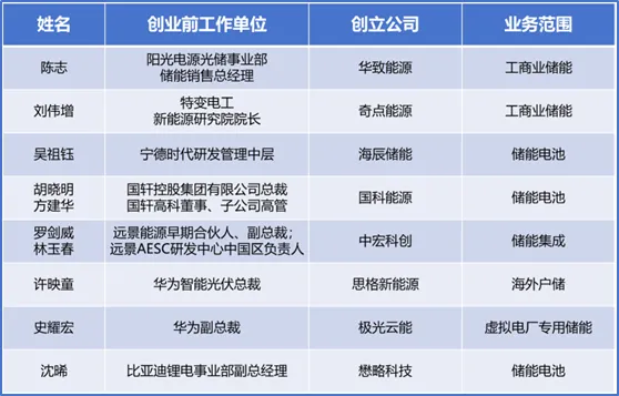 储能是热门行业,头部企业关键岗位的高管一旦流露出创业意愿,就会有各路资金全力撬动和助推。