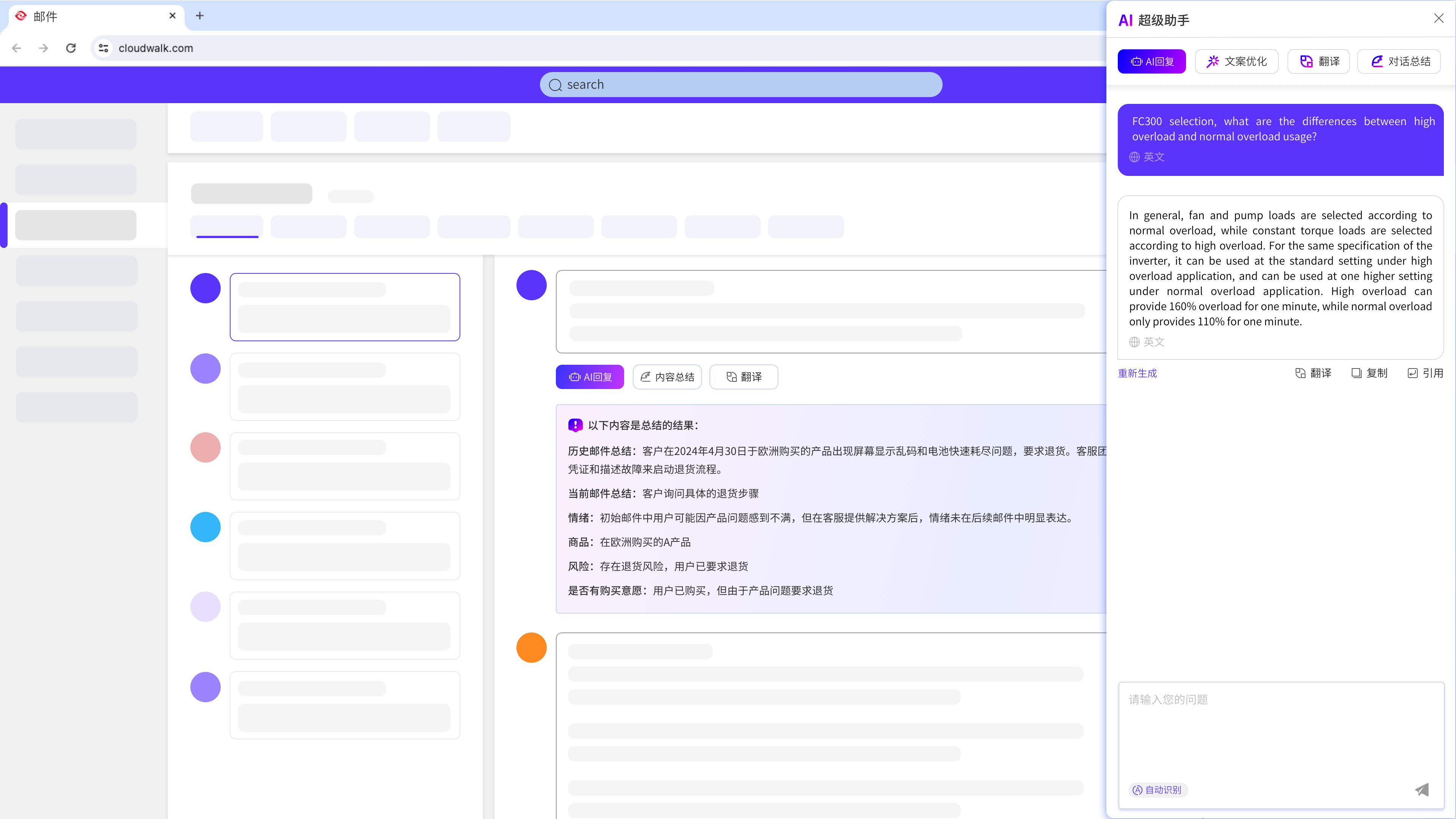 邮件系统或自建工单等系统中提供嵌入式的Copilot,支持AI回复、内容总结、多语种语言翻译、情绪识别、客户诉求识别。智能客服服务平台还提供运营数据监测、售前转化分析、售后损耗分析、营销优化分析,全面释放数据价值。