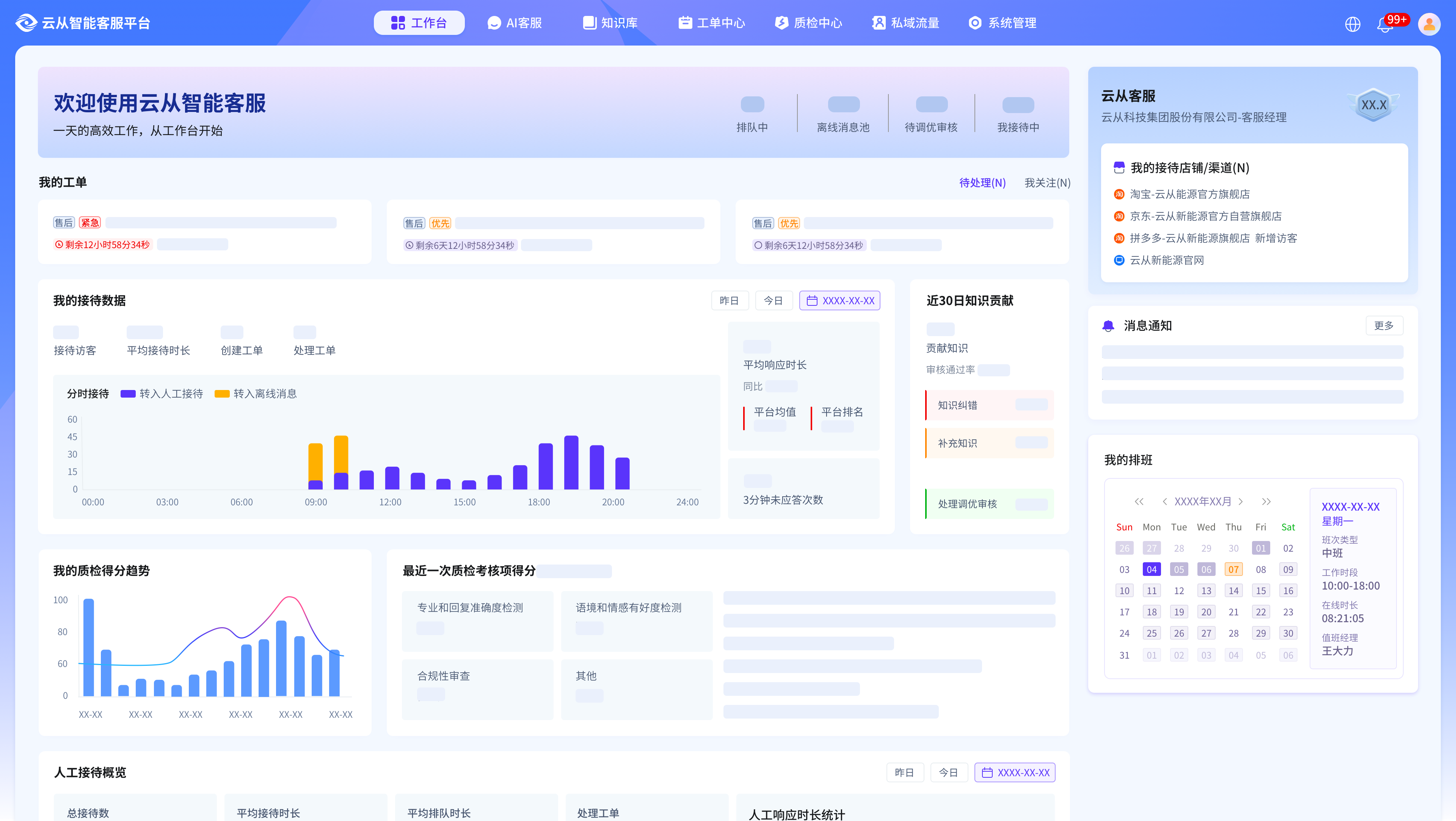云从科技为该客户打造了智能客服服务平台,利用客户面板,订单面板,商品面板,售后面板标签面板,物流面板,APP面板,协同面板为客服人员提供了一个不需要跳走的全场景工作台。
