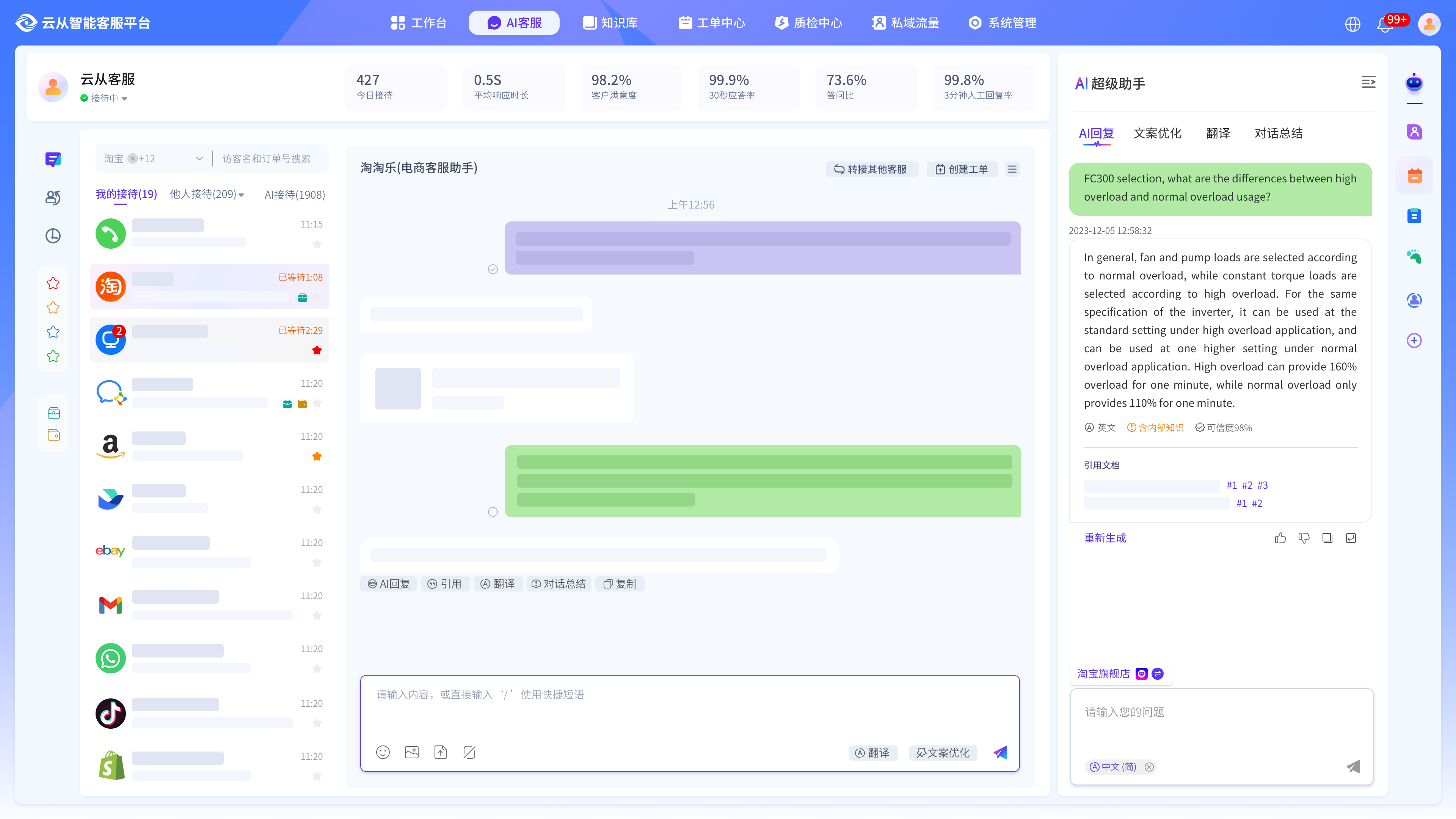 同时,平台面向客户的意图/情绪识别、AI自动回复与多语种交互,面向客服人员的话术推荐与个性化智能教练等领域,集成了知识库快速构建、全渠道接入(邮件,聊天,电话,独立站,APP,社媒,直播,电商平台)、全场景赋能等核心能力,能够24小时无间断提供客户服务。