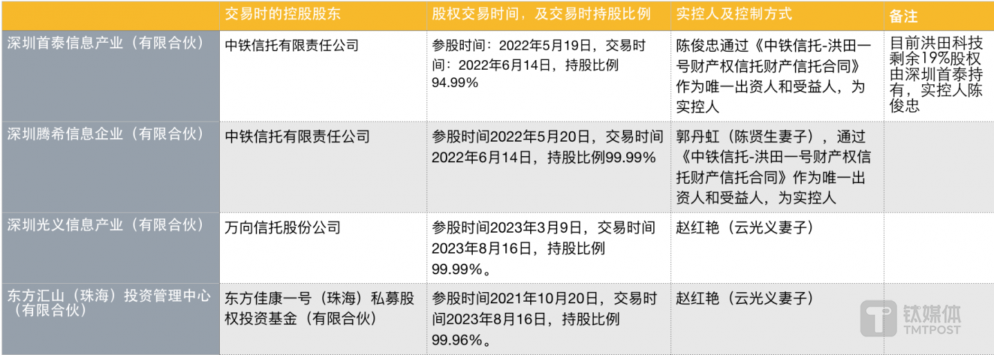 洪田科技持股方背景