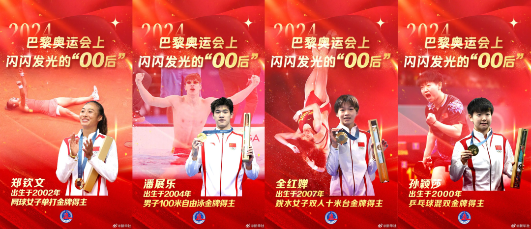 作为2007年和2005年出生的“00后”,两人凭实力硬控奥运赛场。而据娱乐独角兽不完全统计,截止写稿时间,巴黎奥运会中为中国拿下金牌的00后运动员达15人,赛事项目达12项,其中甚至不乏记录突破者:中国网球首枚奥运女单金牌得主郑钦文、男子100米自由泳中破纪录夺冠的潘展乐等。
