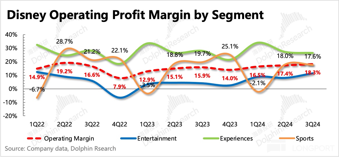 与此同时,考虑到用户流失的必然性,迪士尼早就将有线媒体的投入排序靠后,关闭了一些低效变现的频道,使得该部门的经营利润率反而有所提升。