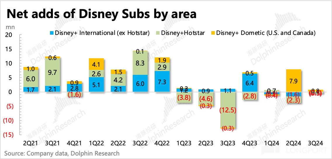 当期还属于涨价周期内,可能也对用户增长产生了一些影响。但尽管如此,近期迪士尼又宣布对 Disney+ 与 Hulu 捆绑的套餐进行涨价。欧洲地区、印度地区则继续环比流失。