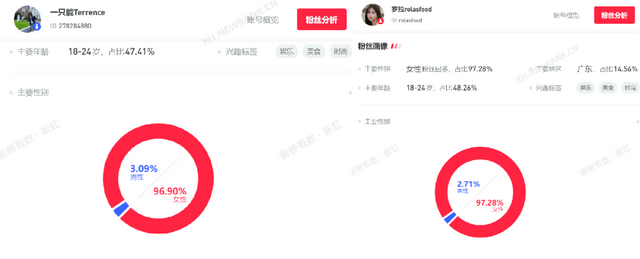 新榜数据显示,在分手事件发酵至今,王能能的抖音粉丝数量减少了近1.5万,小红书粉丝也流失了超过2000人。与此形成鲜明对比的是,罗拉的抖音账号粉丝数却增加了超过5万。这与《心动的信号2》中“天意CP”公开争执引发的效应类似。陈奕辰方泄露与张天的录音导致了女方粉丝数量增长超过十万,而男方粉丝数却呈现出相应的下滑。考虑到恋综网红的粉丝性别构成中,女性粉丝均占据了主导地位,因此在分手中更容易共情女方的心理和处境。