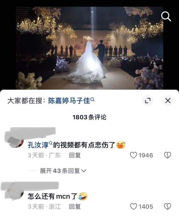 同一天,继与《心动的信号4》中的孔汝淳分手之后,马子佳首次在公众面前高调宣布了自己的结婚消息,不少CP粉表示:“悬着的心终于死去了”。
