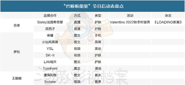 例如,此前马子佳和孔汝淳单人单平台的报价8万左右,合体价格则是单人的3倍,达到25万以上。在参与《半熟恋人》之前,罗拉以其美食博主的身份为人所知,然而节目播出后,她与王能能迅速获得了与法国美妆品牌Sisley、意大利时装品牌Valentino以及时尚杂志新潮Loading等高端品牌的合作机会,这些机遇在之前作为个人主时是难以触及的。其他CP的情况也类似,娱乐资本论此前在《恋综职综成网红基地,令素人心动的offer有多赚?》一文中做过具体分析。